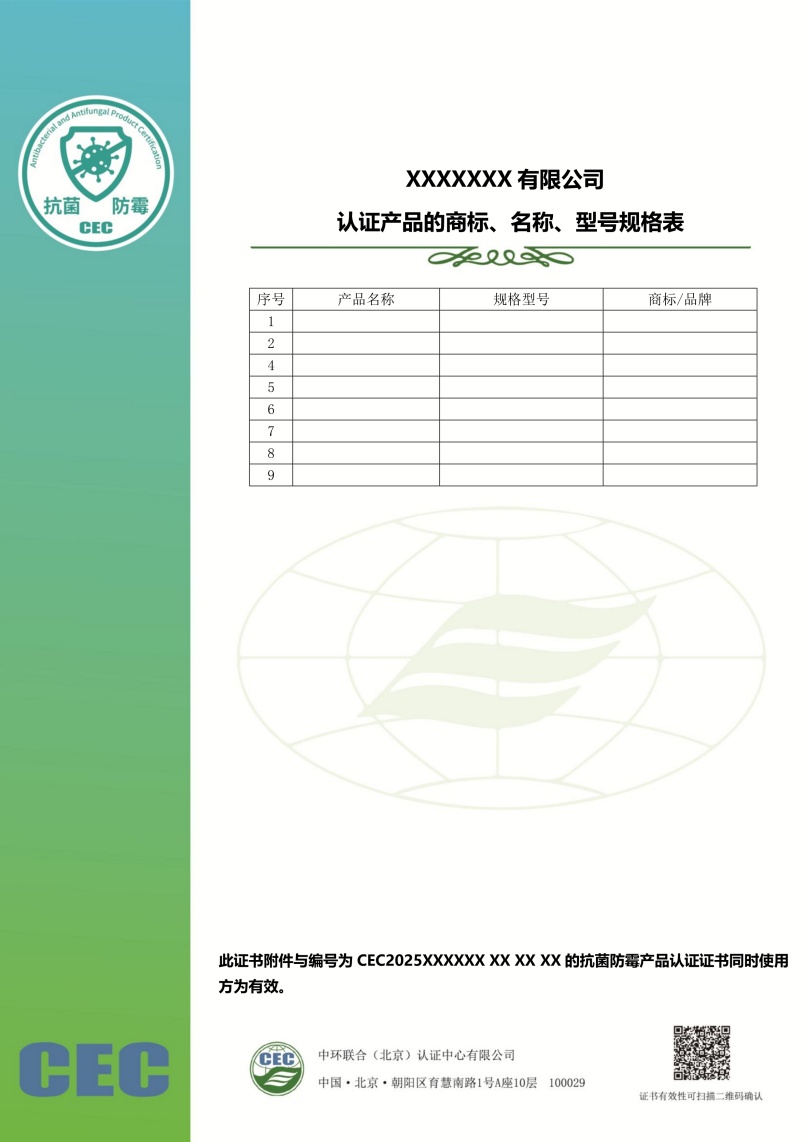 抗菌防霉产品认证证书模版